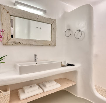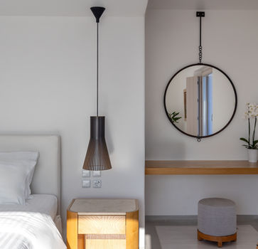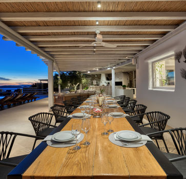 Villa Alira is a luxurious and elegant property complex offering a seamless blend of comfort and style, divided into two separate buildings: a 5-bedroom villa and a 4-bedroom villa, positioned side by side. Located just 3.1 miles from Mykonos Airport and close to popular attractions like Psarou Beach (1.9 mi), the Mykonos Windmills (2.5 mi), and Little Venice (2.5 mi), this prime estate is ideal for larger groups or families. The villa boasts breathtaking panoramic views of the Aegean Sea and features a large infinity pool (heated upon request), making it a perfect setting for luxurious island living.