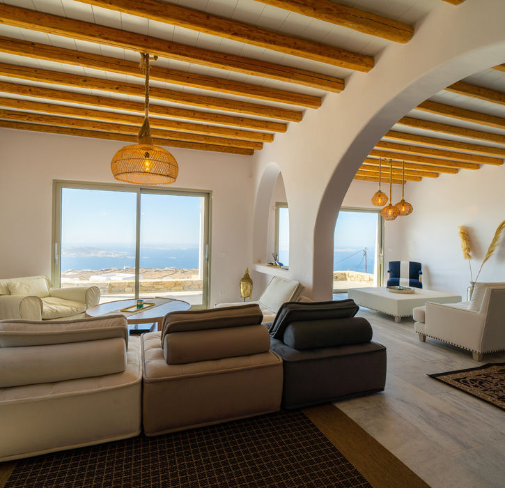Villa Atelos - Elevated above Mykonos beneath the iconic Myconian Castle, this luxury 7-bedroom estate offers sweeping Aegean views, a private pool, an outdoor lounge, and total privacy. Just minutes from Chora, ports, and beaches, Atelos delivers tranquility and elegance in every detail.