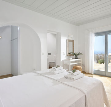 Villa Grand is a landmark estate in Mykonos, offering breathtaking panoramic views of the Aegean Sea and a front-row seat to unforgettable sunsets. Spanning over 600 sqm with an elegant Cycladic design, this 5-bedroom villa and its guest house can host up to 14 guests in comfort. Located just 15 minutes from town, Villa Grand is the ideal escape for families and friends seeking privacy, space, and ultimate relaxation.
