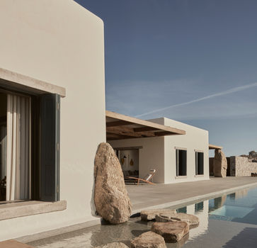 Villa Mandella is a brand-new 5-bedroom luxury estate in Aleomandra, Mykonos, featuring 5 bathrooms. With sweeping sea views, a 25-meter infinity pool, a Techno-gym, and award-winning design, this private retreat combines minimalist elegance with island serenity, perfect for families, groups, and design lovers alike.