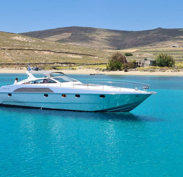 The Alfa Fifty offers a sleek cruising experience with space for up to 16 guests and 2 crew, combining comfort, speed, and premium onboard service, ideal for exploring the Mykonos coastline.