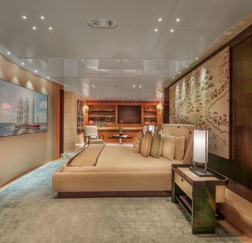 Styling the exterior and designing the interior, Ken Freivokh ensured that the Maltese Falcon’s spaces are not only stylish but highly functional. Beneath her commanding sails lies a collection of dedicated living spaces with a gentle, inviting feel. Guests can enjoy numerous deck spaces perfect for both formal and informal occasions. A standout feature is the projector screen positioned behind the lower sail, which doubles as a cinema screen to enjoy movies under the stars. In fact, it is the largest of its kind ever installed on a superyacht.
